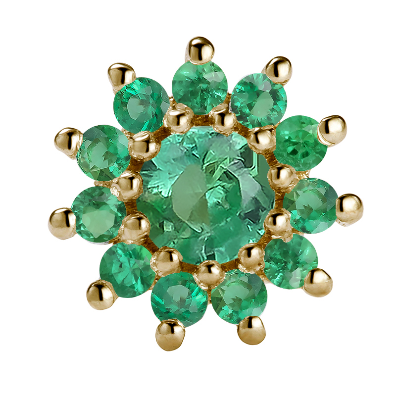 14Kt Solid Gold Emerald Threadless multi-Gem Sun Flower Top