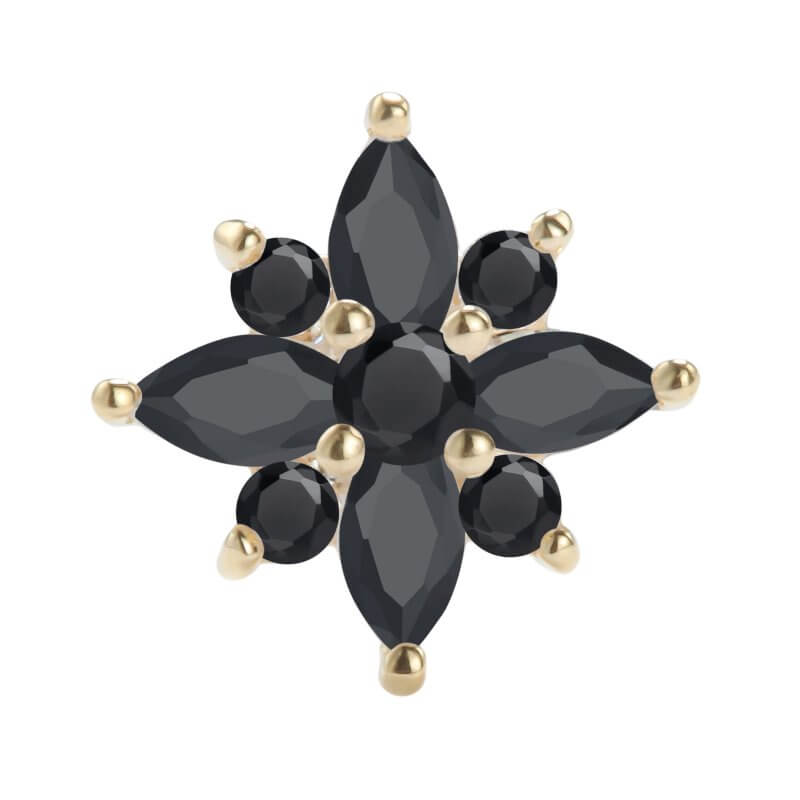 14Kt Solid Yellow Gold Black CZ Flower Top