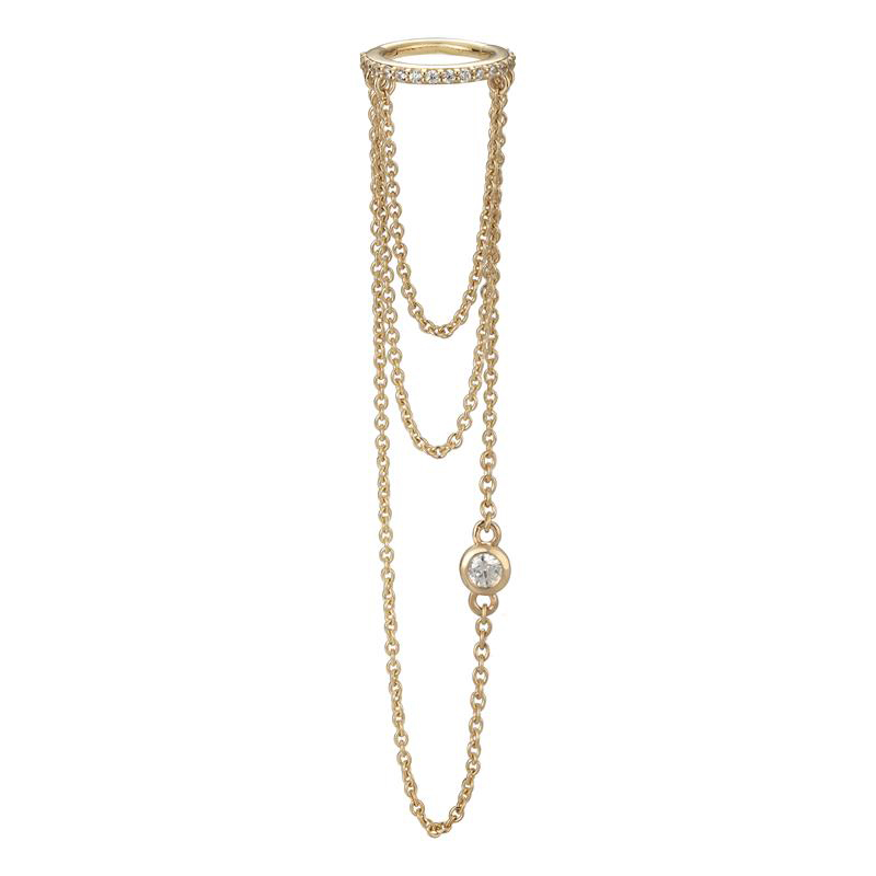14Kt Solid Gold Gemmed Clicker With Drop Chain and Bezel Charm