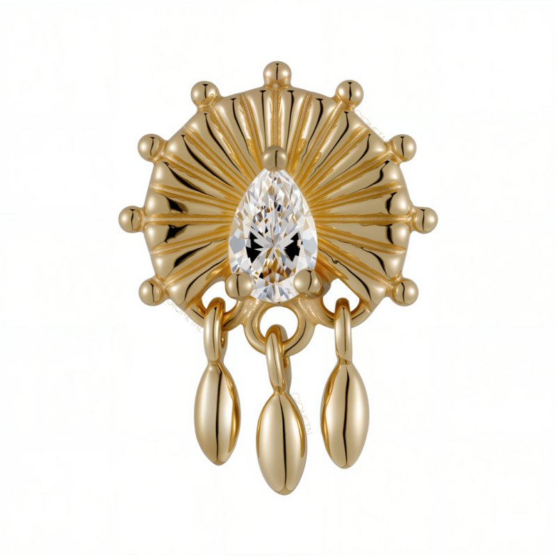 18Kt Beaded Fan with Oval Dangle Threadless Top