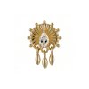 Pictured in fanlike 18Kt solid yellow gold with one central teardrop-shaped natural diamond