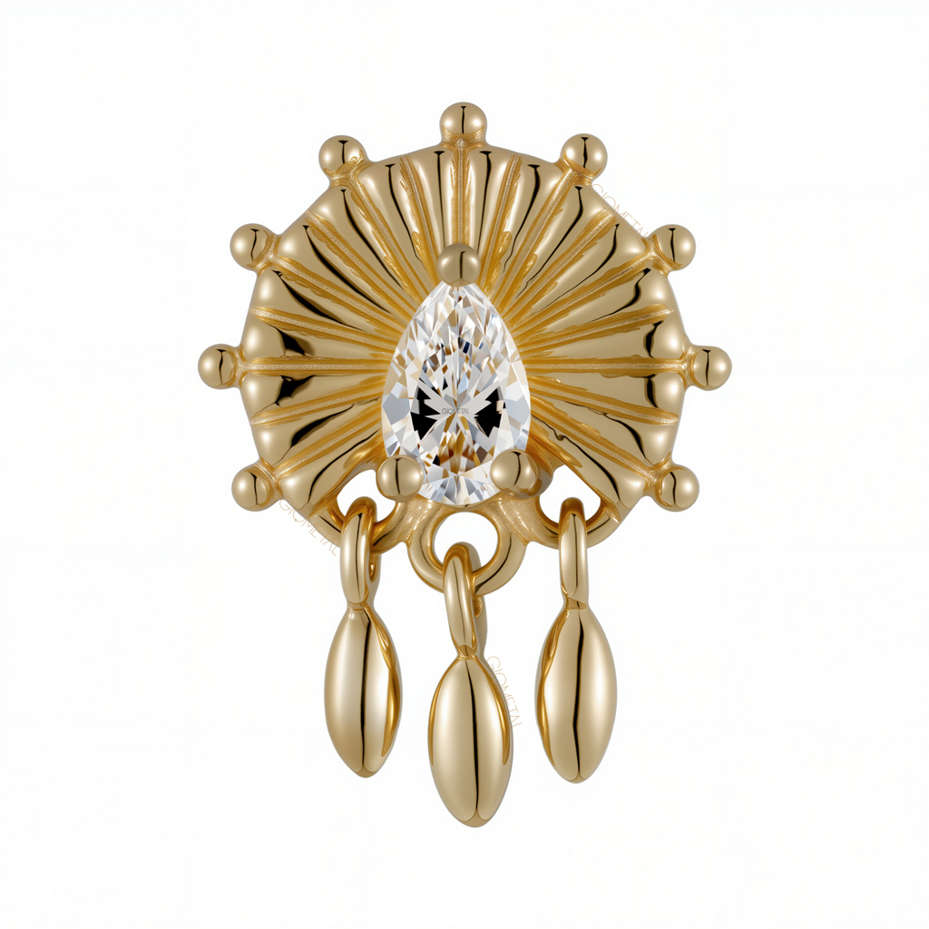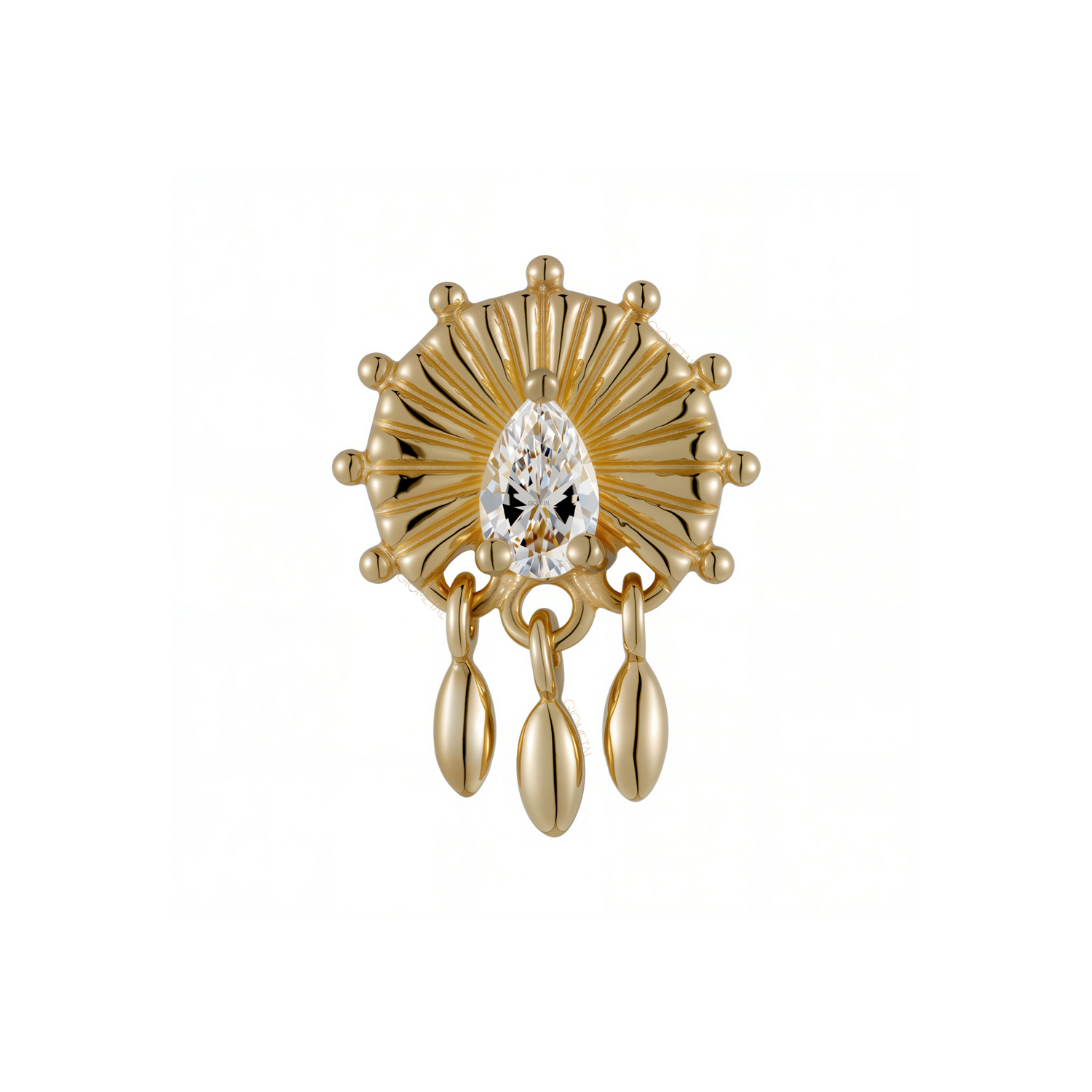 18Kt Beaded Fan with Oval Dangle Threadless Top