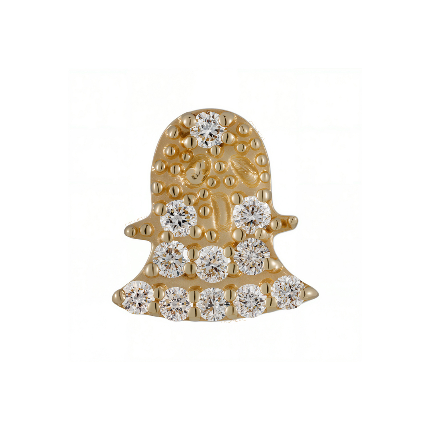 Pictured in 18Kt solid yellow gold bell adorned with numerous round natural diamonds