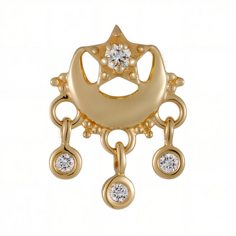 18Kt Gemmed Star with Bezel Set CZ Dangle Threadless Top