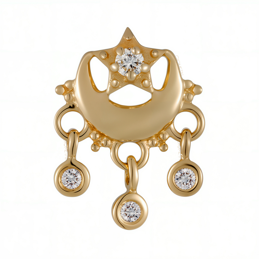 18Kt Gemmed Star with Bezel Set CZ Dangle Threadless Top