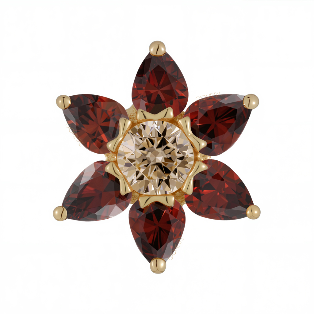 18Kt Six-Petaled Flower with Gemmed Center Threadless Top