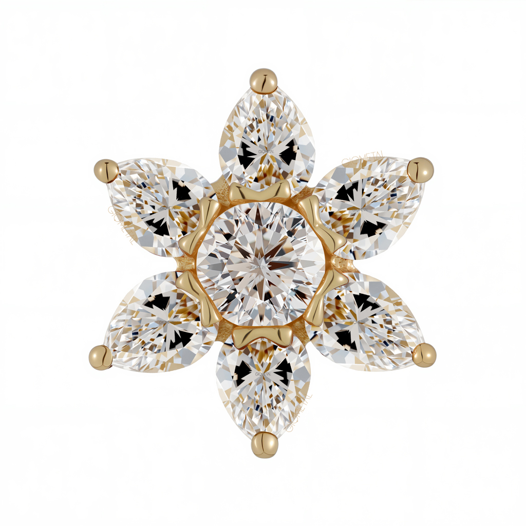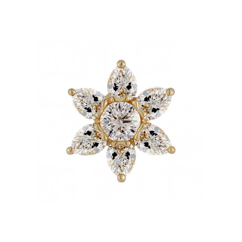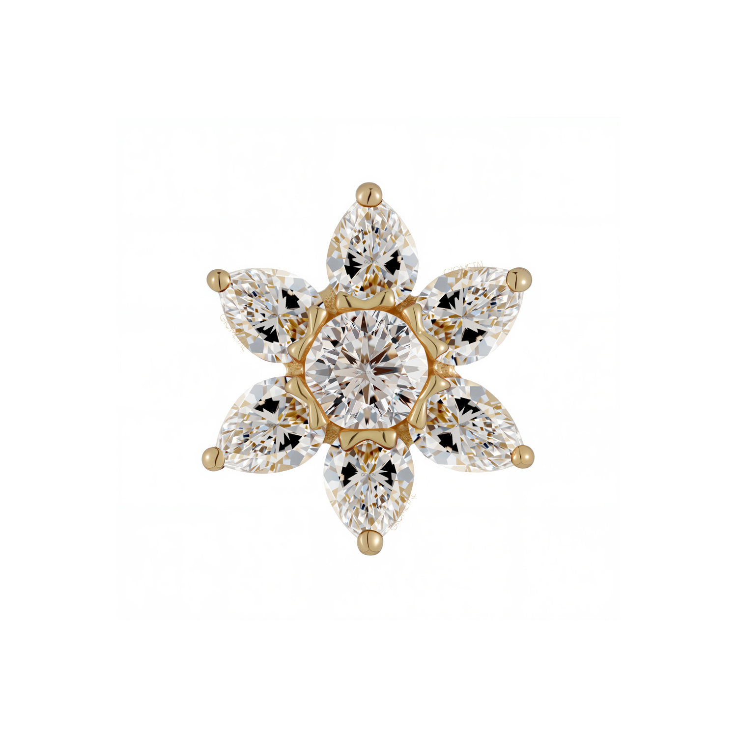 18Kt Six-Petaled Flower with Gemmed Center Threadless Top