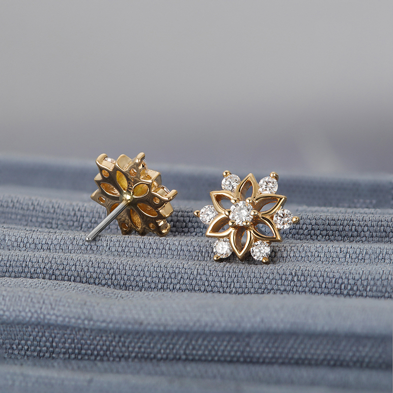 18Kt Solid Gold Diamond Flower Threadless Top