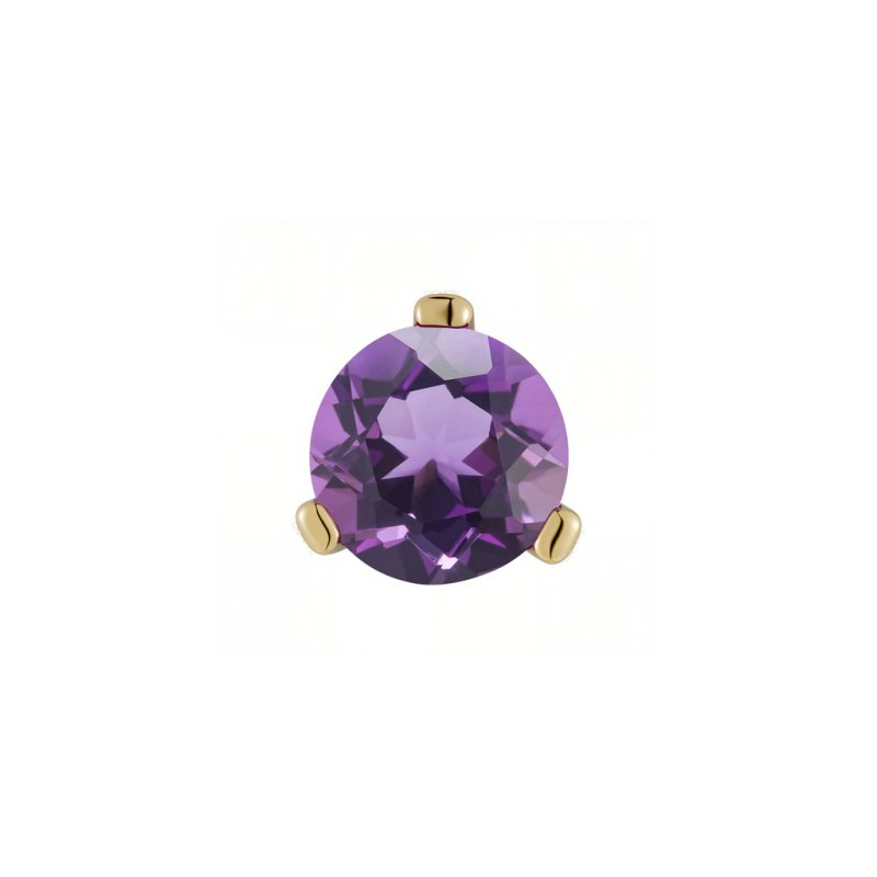 Pictured in 18Kt solid yellow gold set with an amethyst in three-prong setting.