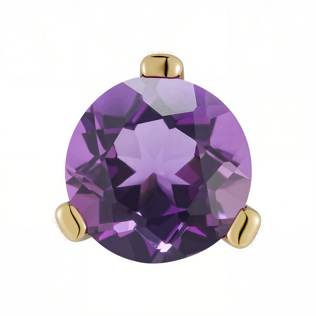 Pictured in 18Kt solid yellow gold set with an amethyst in three-prong setting.