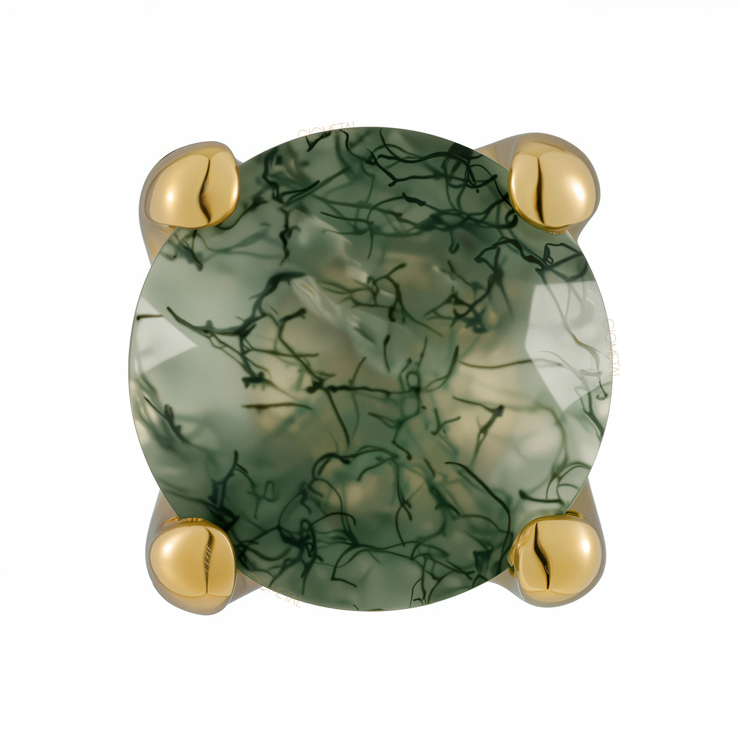 Pictured in 18Kt solid yellow gold set with an Agate Mousse in four-prong setting.