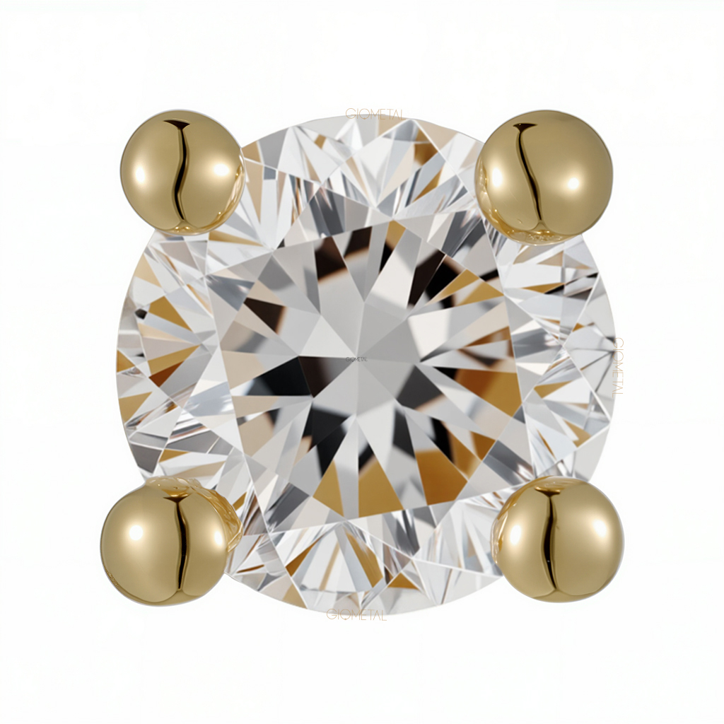 18Kt Solid Yellow Gold 4 Prongs Set Threadless Top
