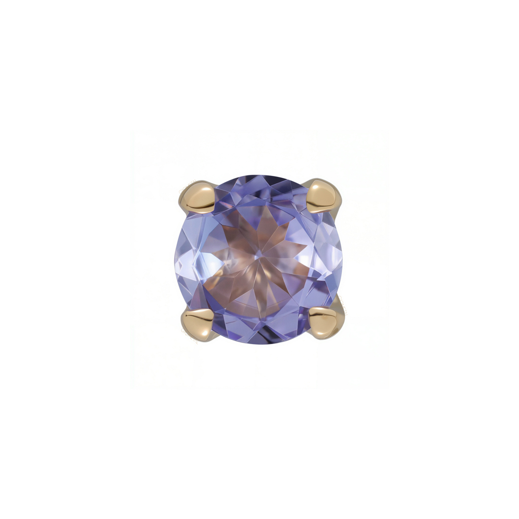 Pictured in 18Kt solid yellow gold set with a tanzanite in four-prong setting.
