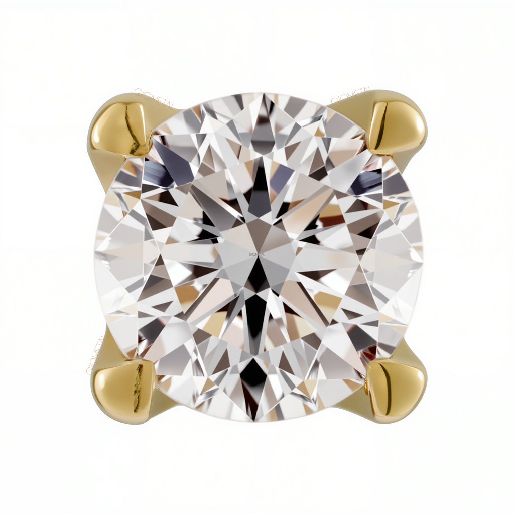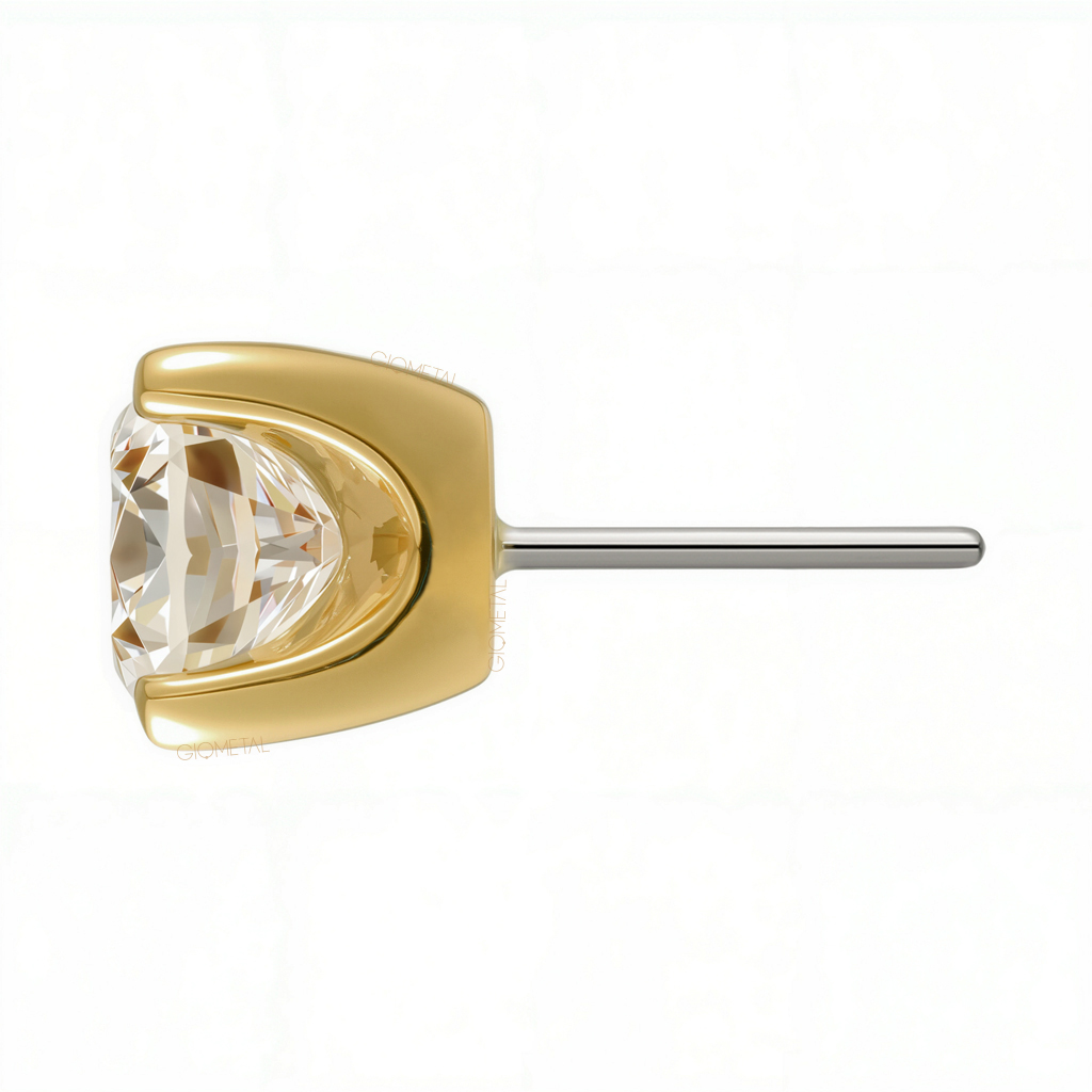 18Kt Solid Yellow Gold 4 Prongs Set Threadless Top