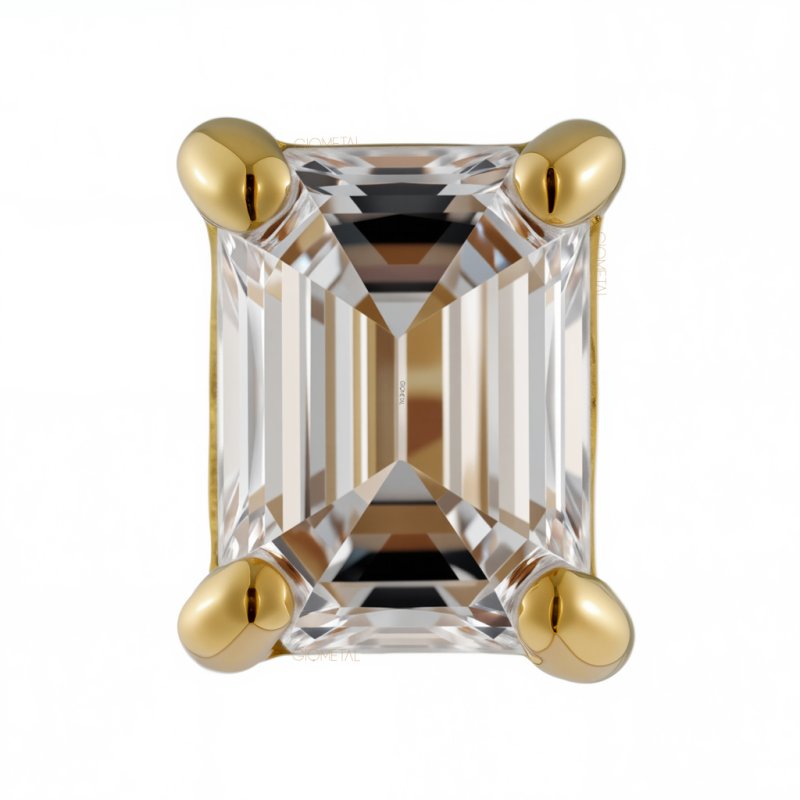 18Kt Solid Yellow Gold Baguette Prong Threadless Top