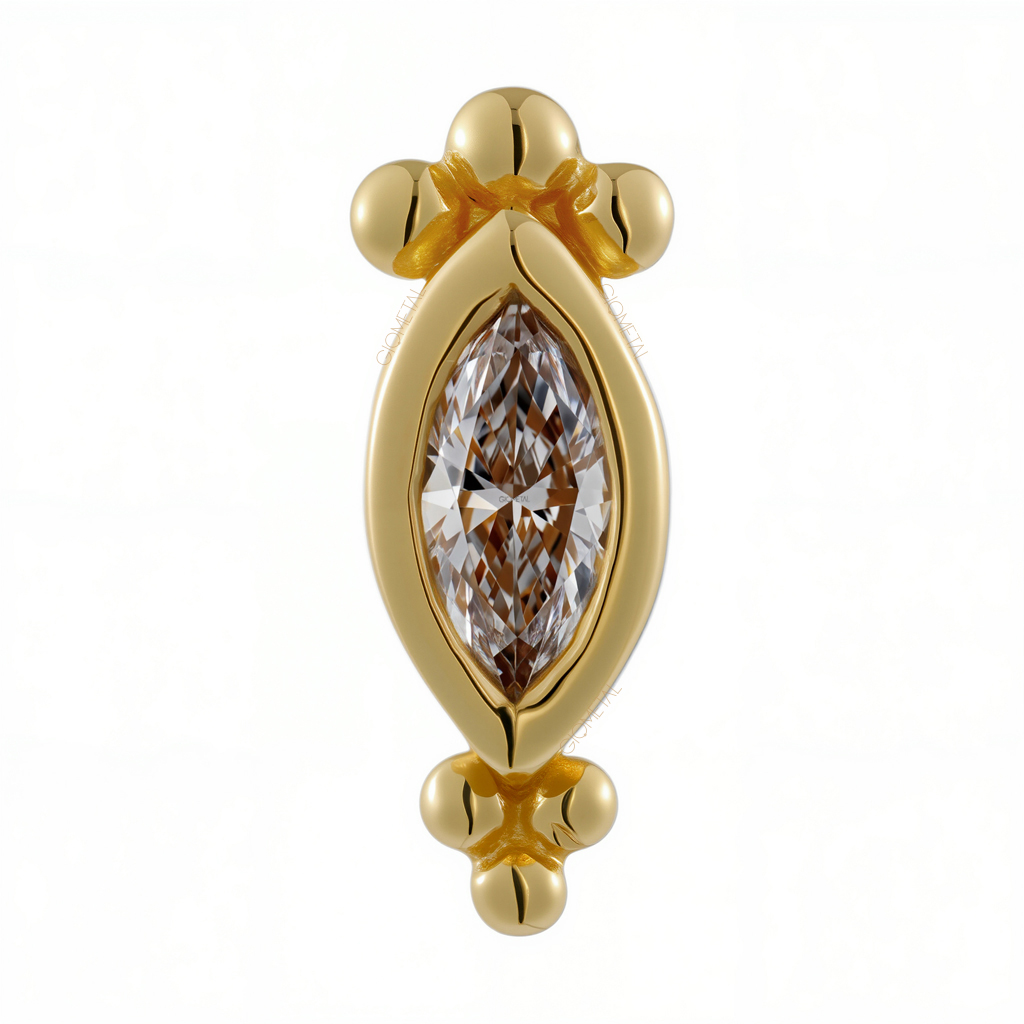 18Kt Solid Yellow Gold Beaed Marquise Bezel Threadless Top