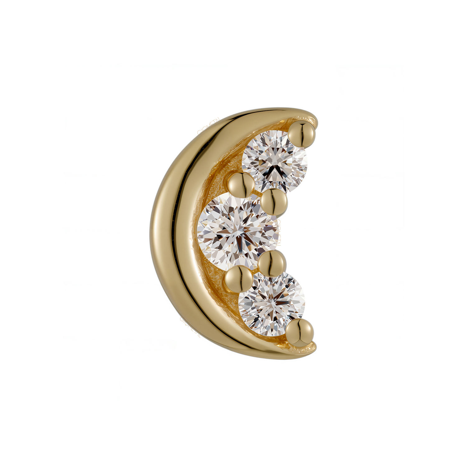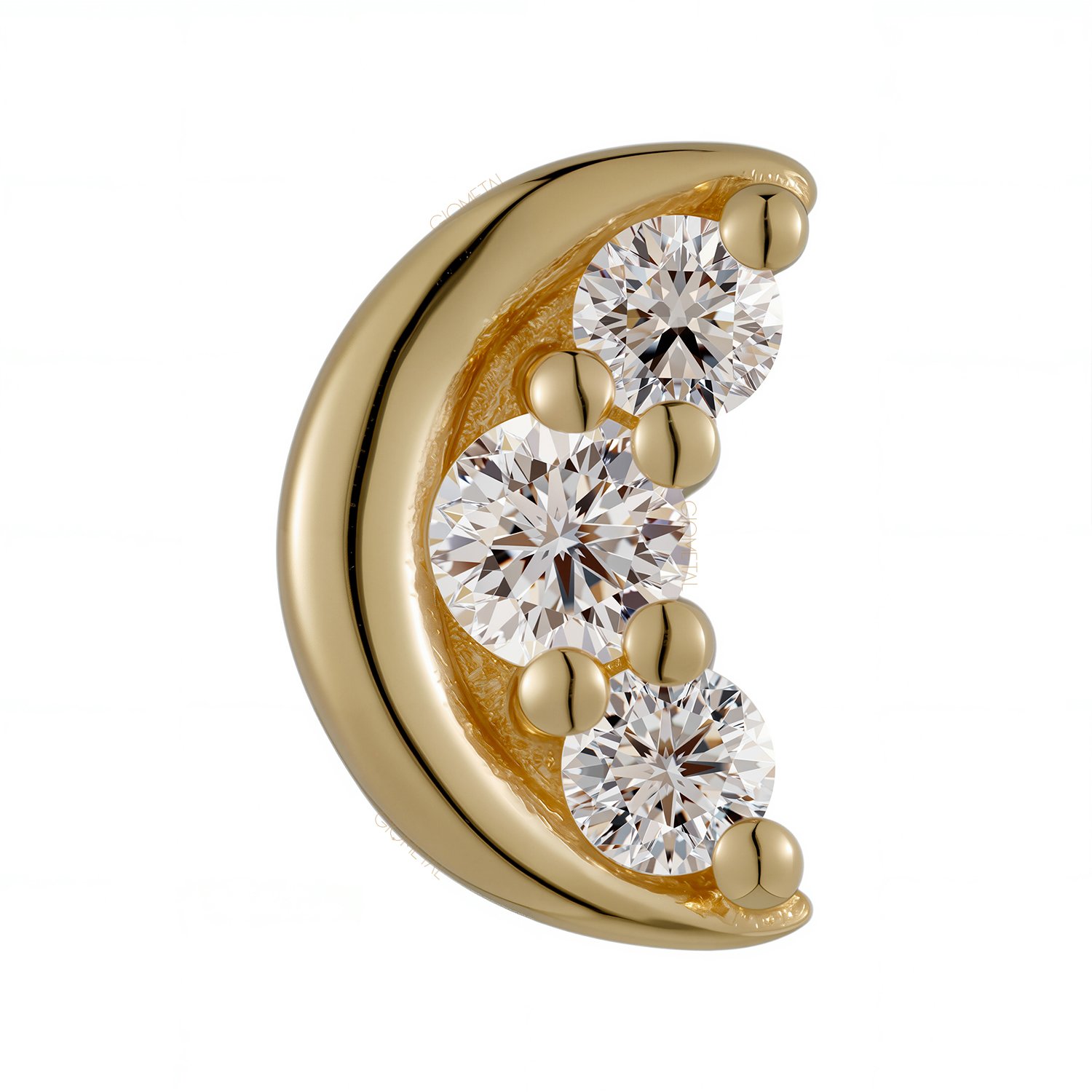 18Kt Solid Yellow Gold Crescent Moon with Triple CZ Threadless Top