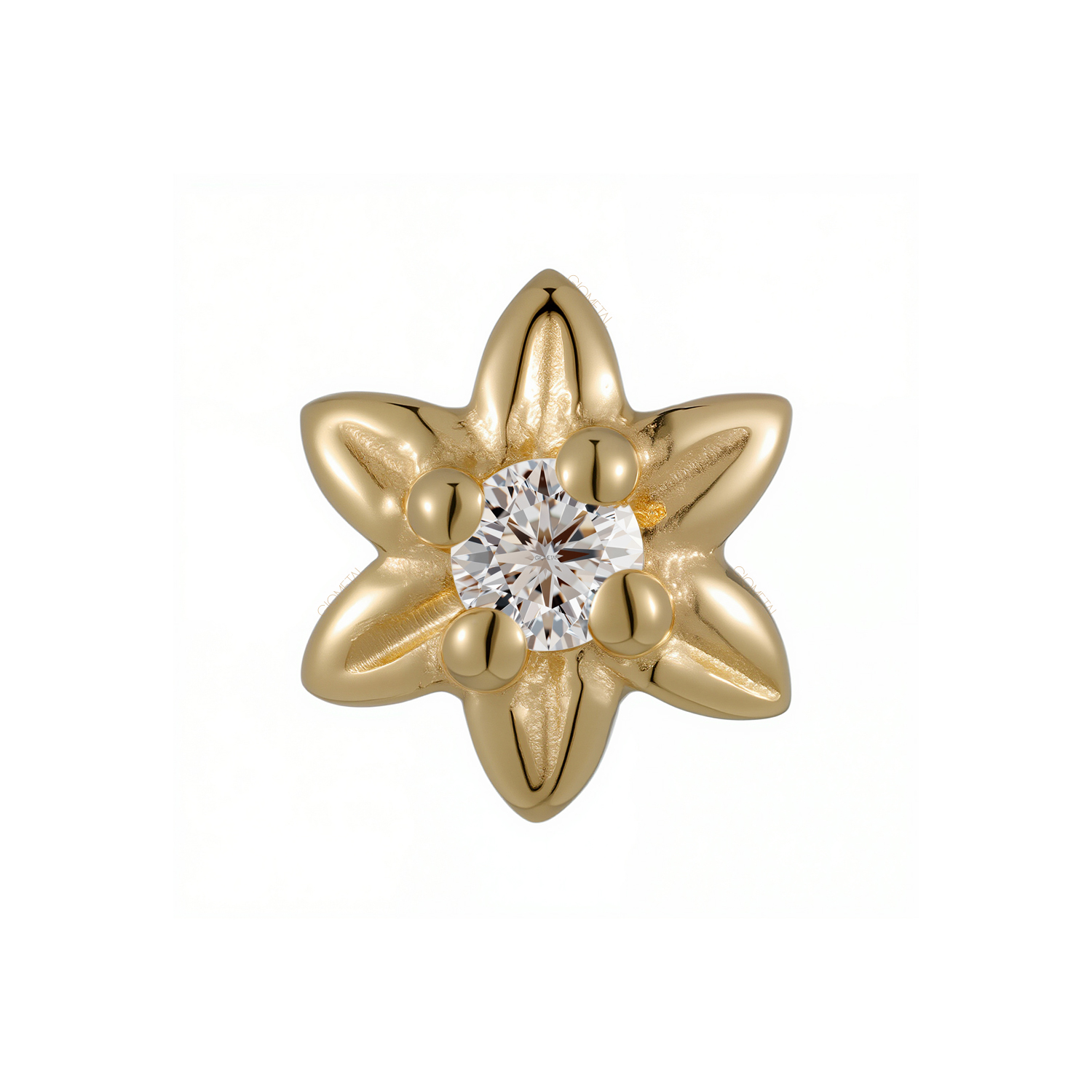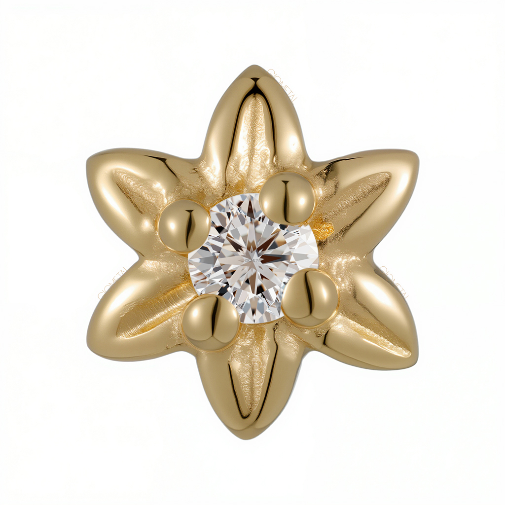 18Kt Solid Yellow Gold Flower Threadless Top