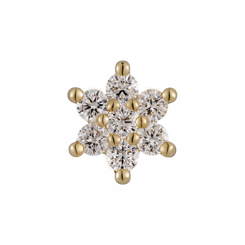 18Kt Solid Yellow Gold Flower Threadless Top