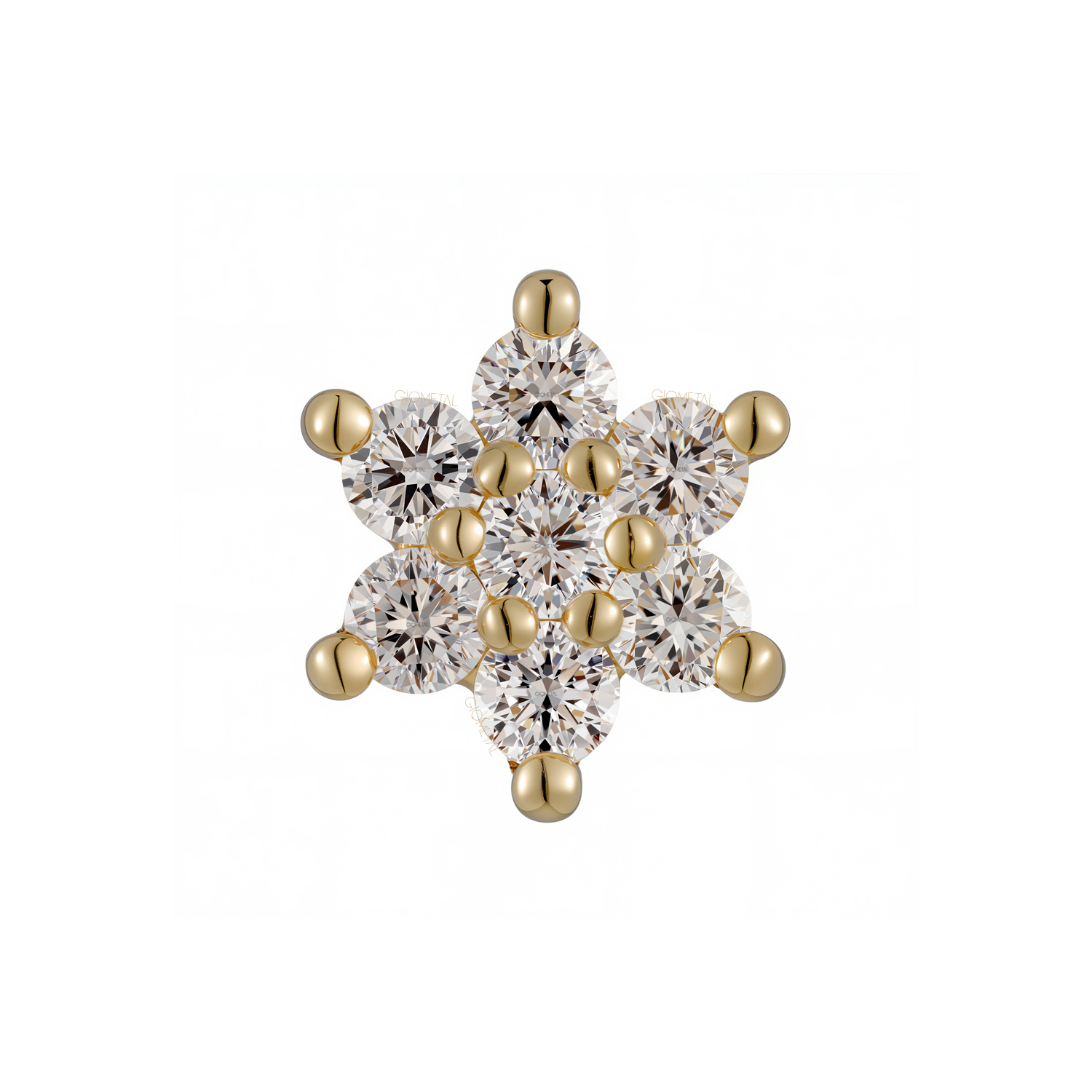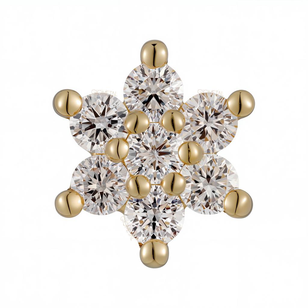 18Kt Solid Yellow Gold Flower Threadless Top