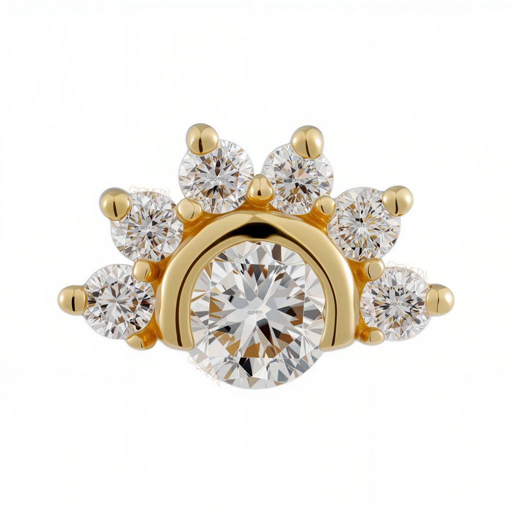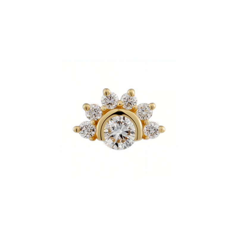 18Kt Solid Yellow Gold Gemmed Fan Threadless Top