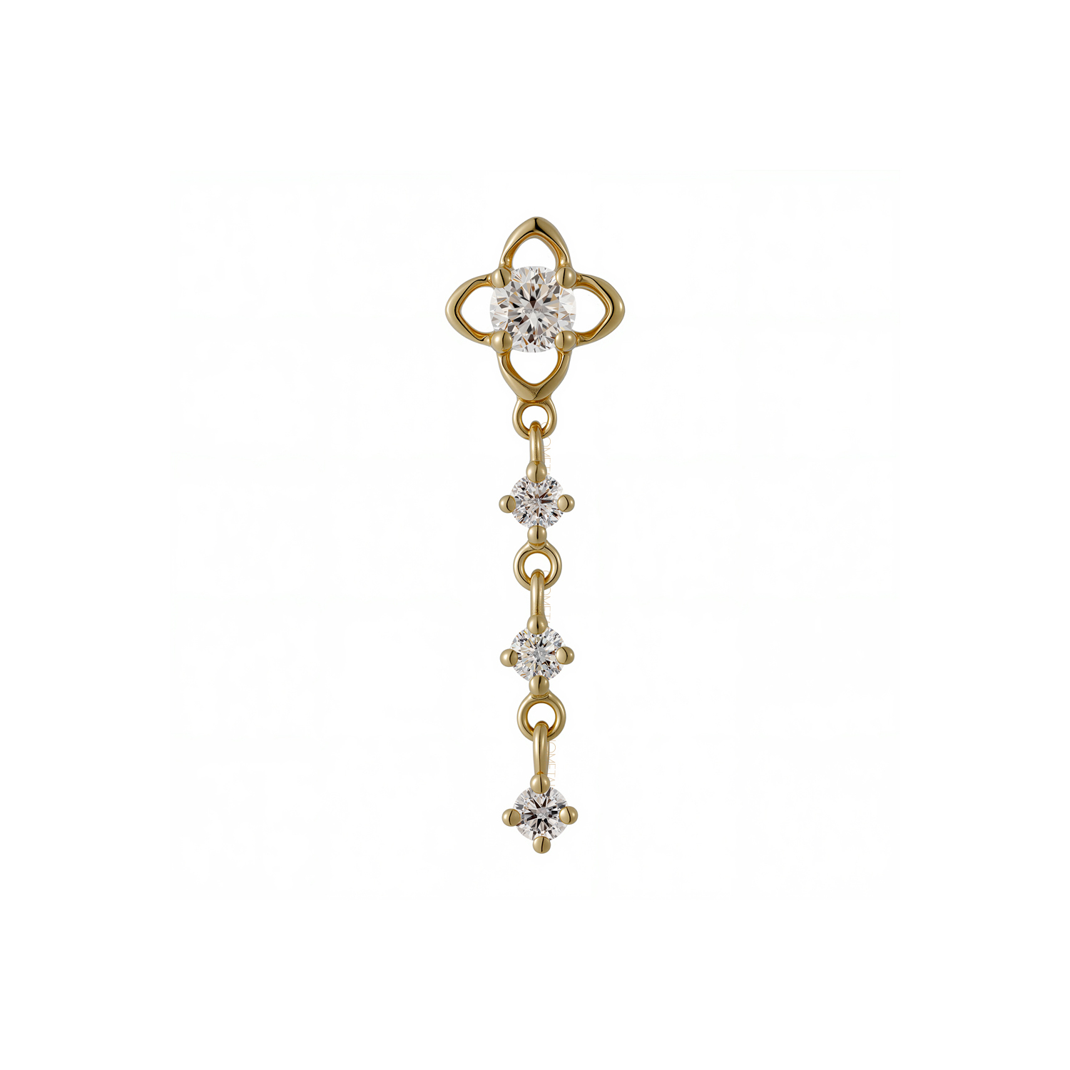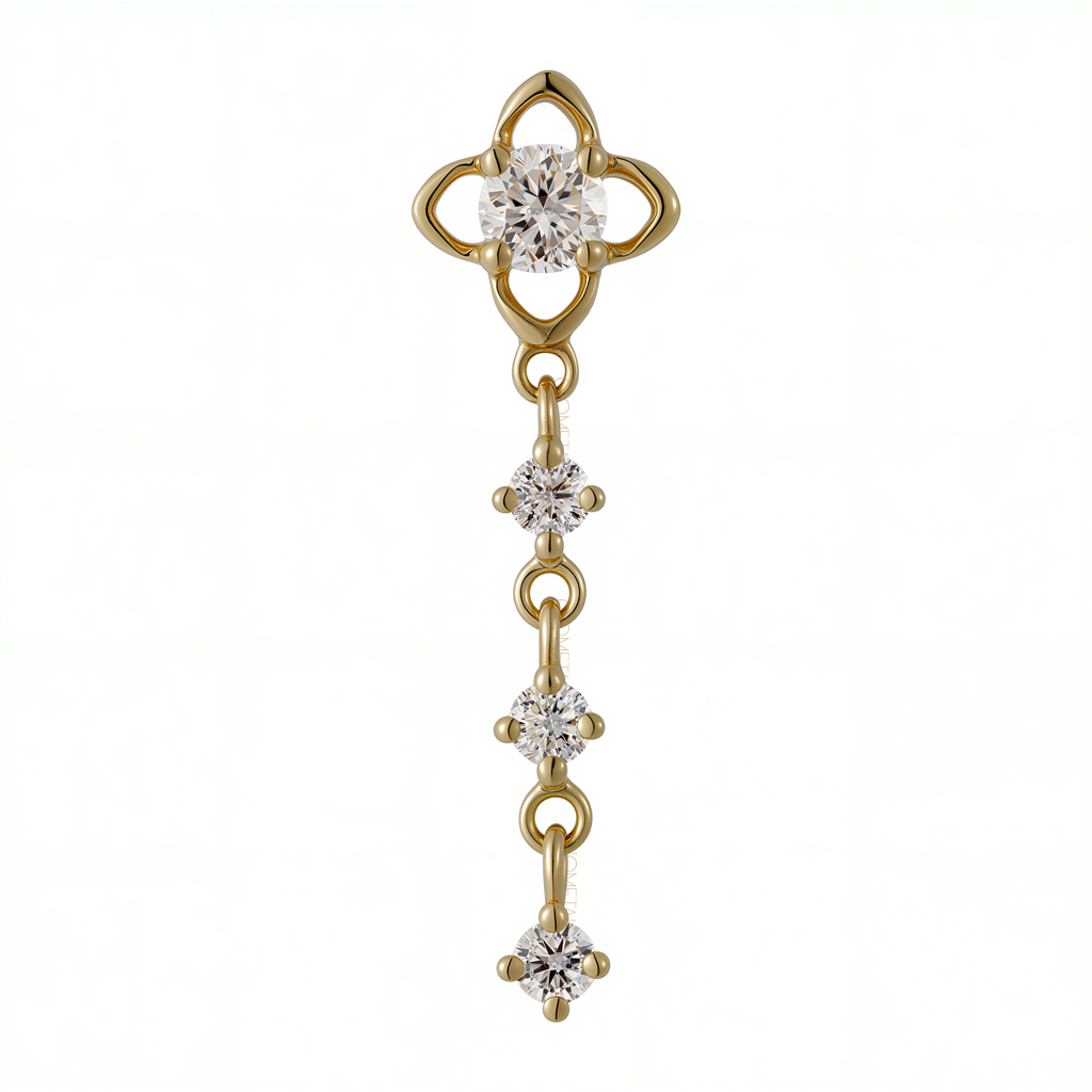 18Kt Solid Yellow Gold Gemmed Flower with Triple Prongs Dangel Threadless Top
