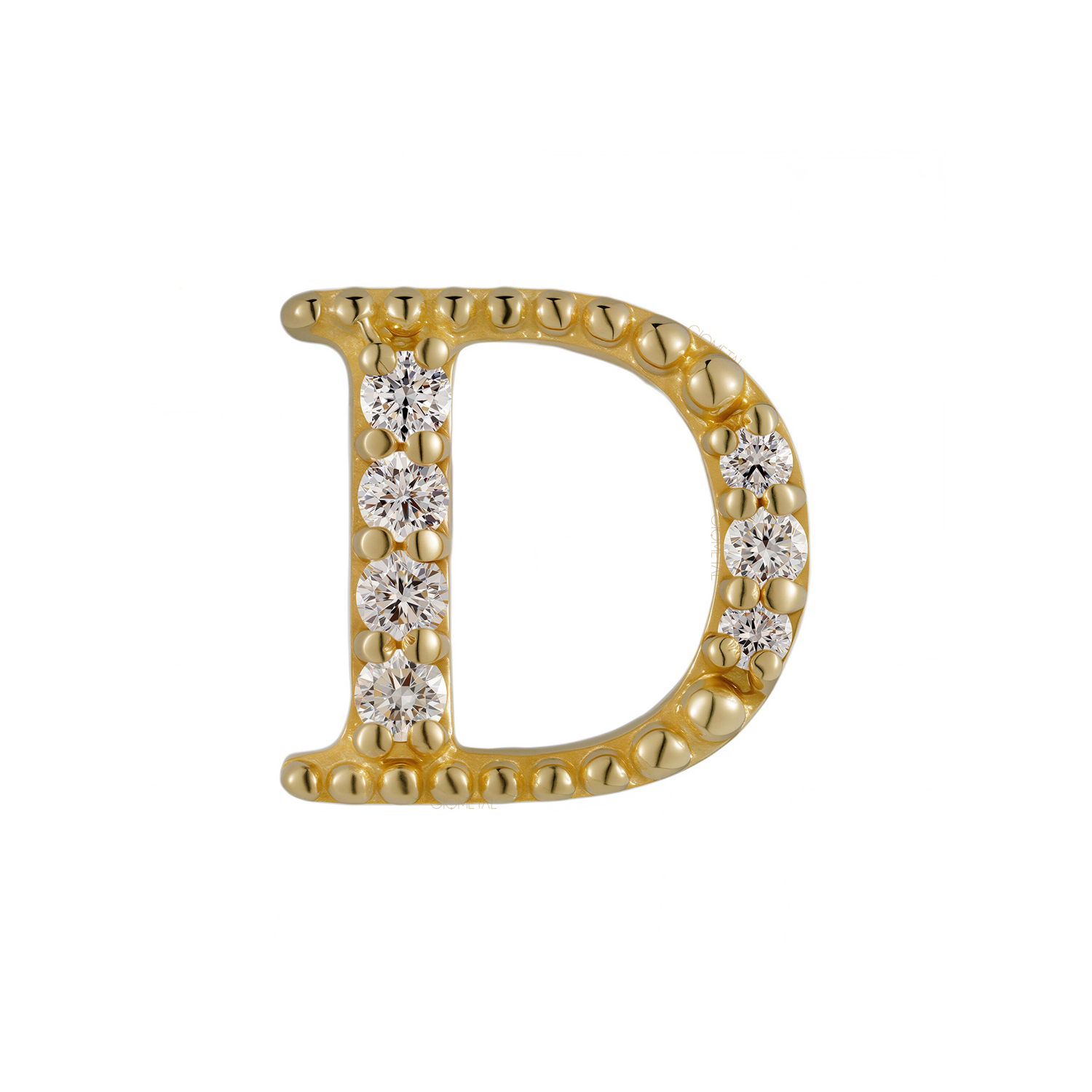 18Kt Solid Yellow Gold Gemmed Letter D Threadless Top