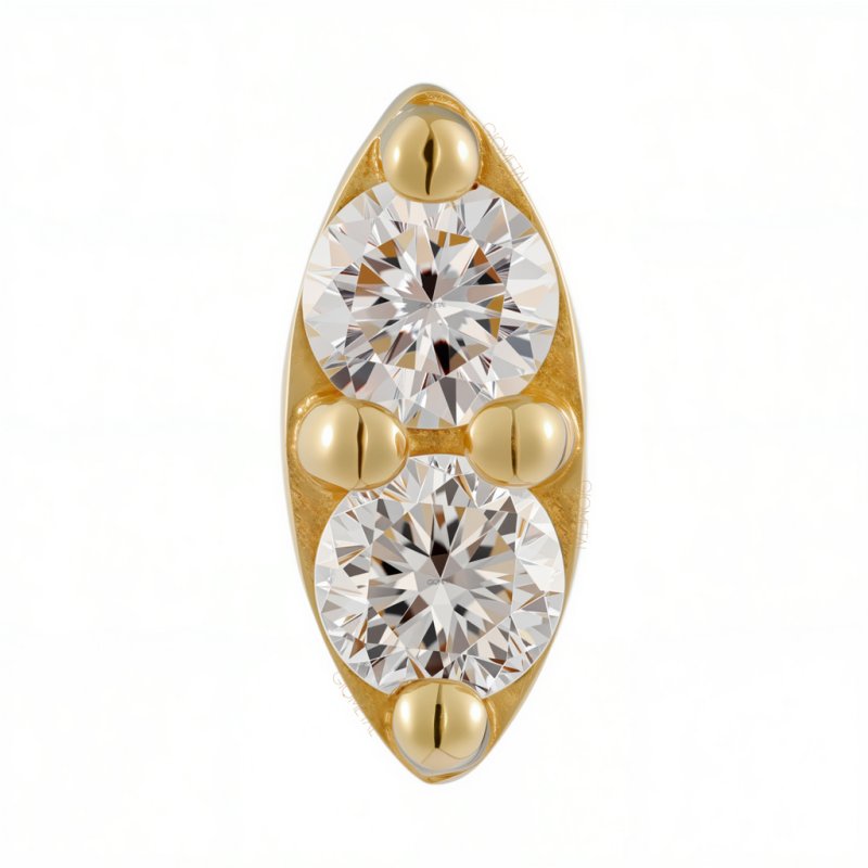 18Kt Solid Yellow Gold Gemmed Olive Threadless Top