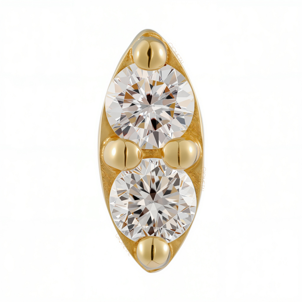 18Kt Solid Yellow Gold Gemmed Olive Threadless Top