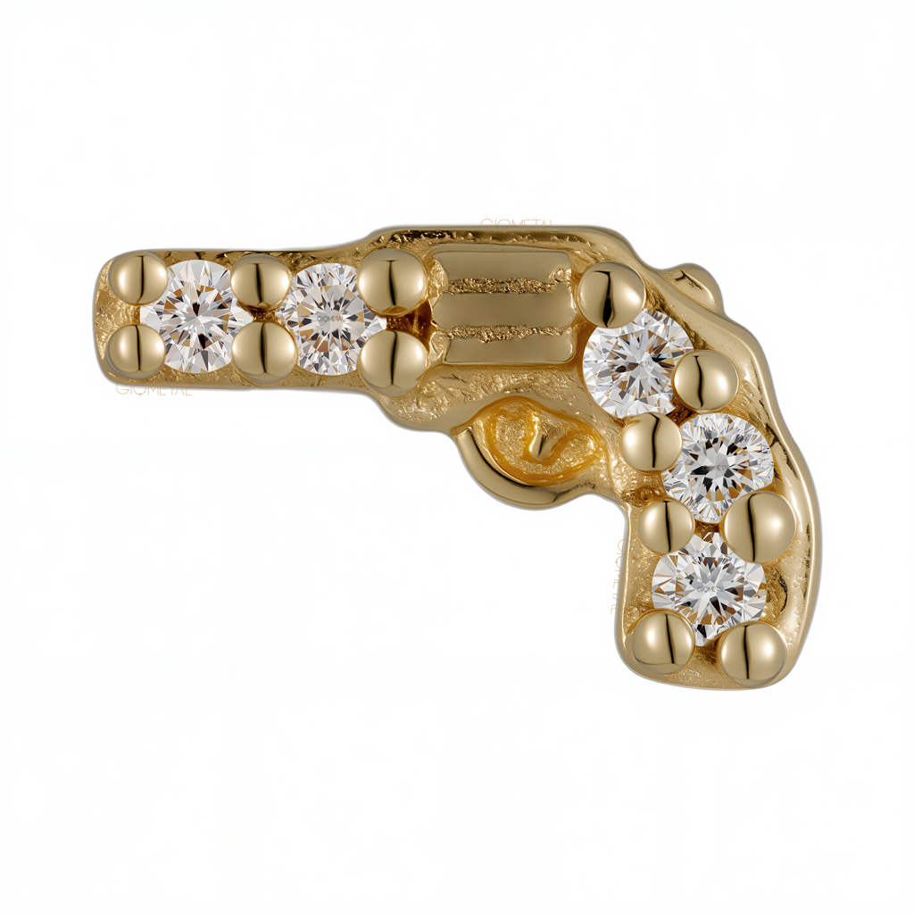 18Kt Solid Yellow Gold Gemmed Revolver Threadless Top