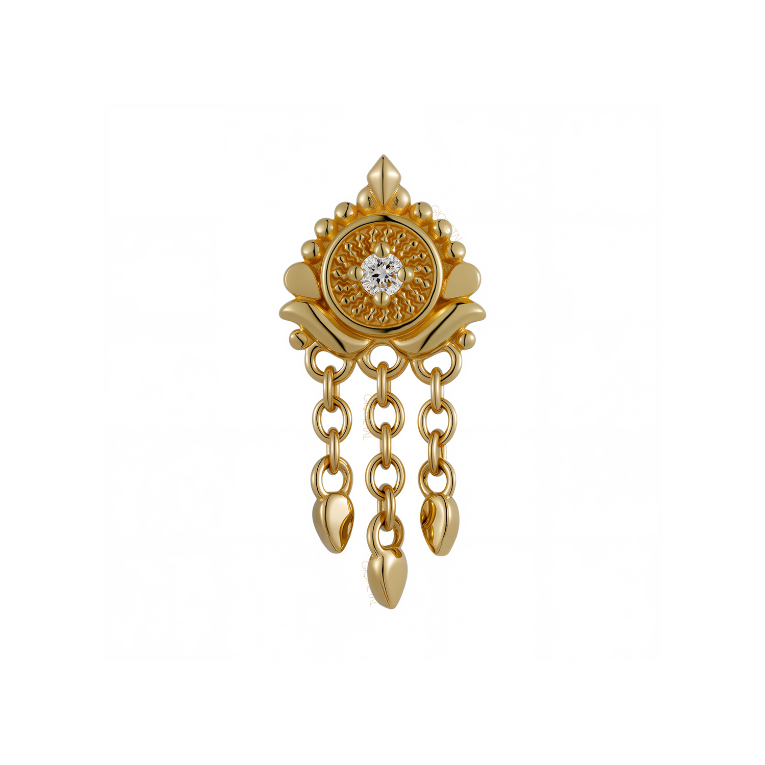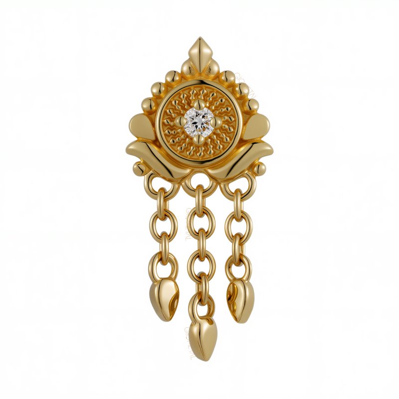 18Kt Solid Yellow Gold Gemmed Rococo Flower with Chain Dangle Threadless Top