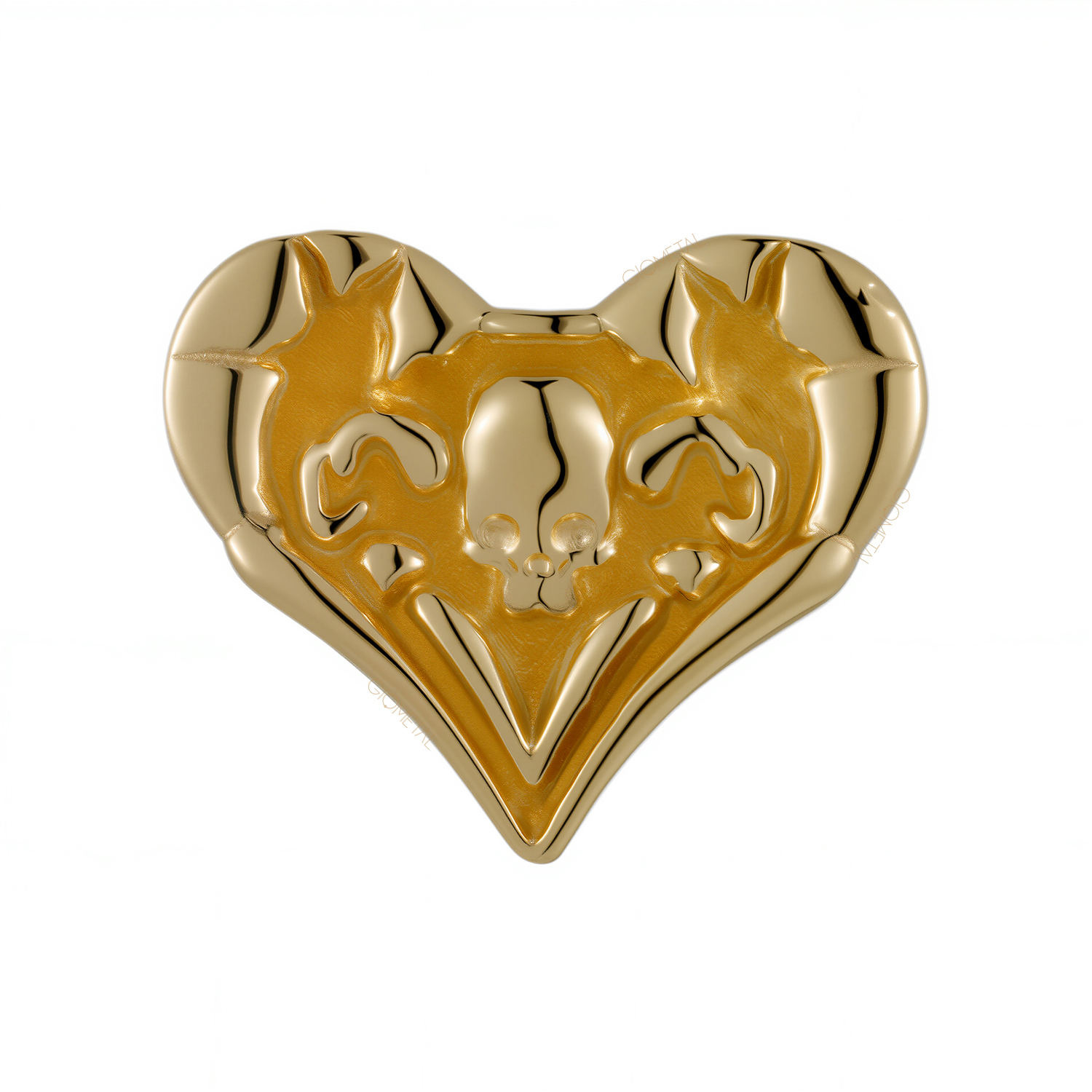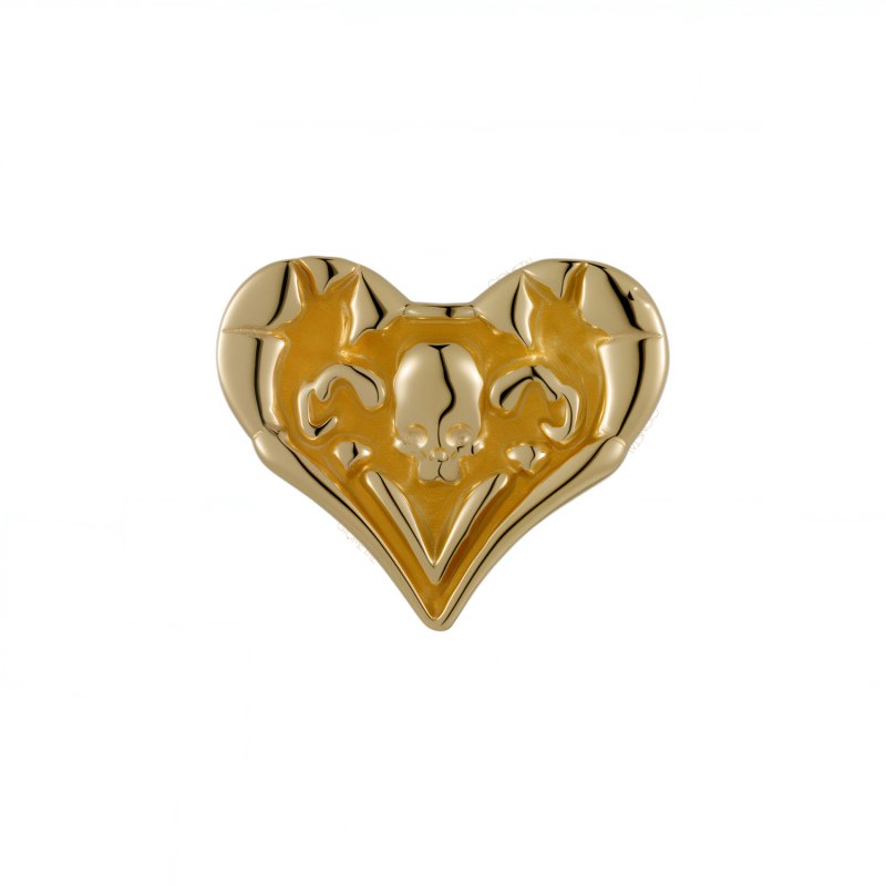 Pictured in 18Kt solid yellow gold with a Halloween skull-in-heart design.