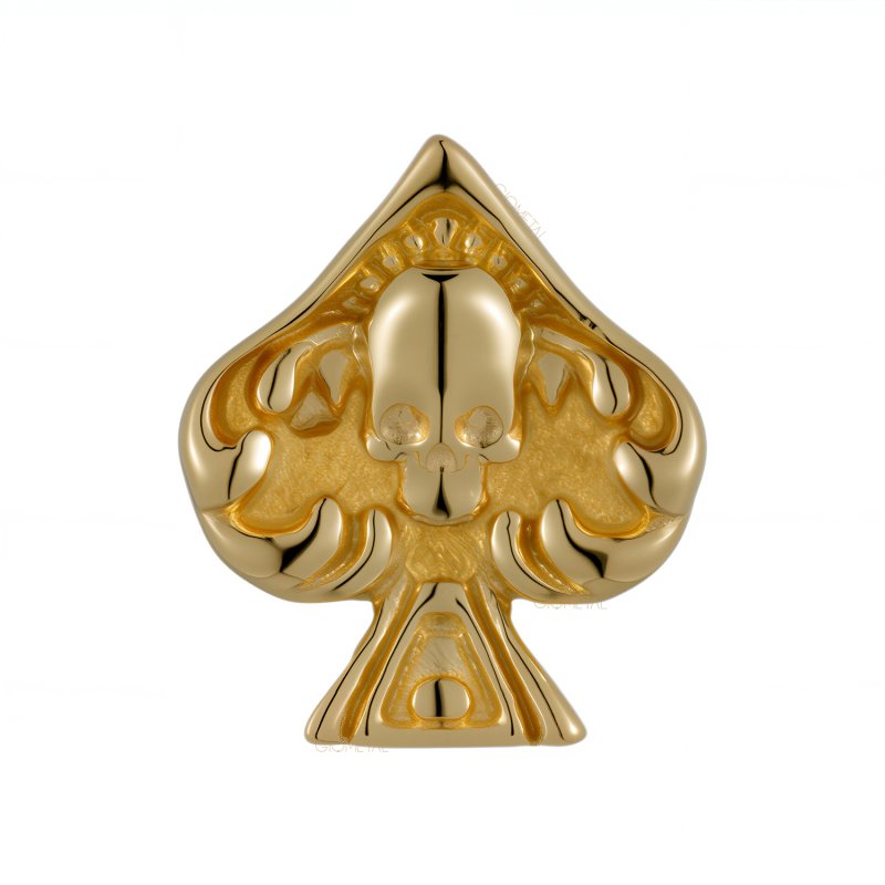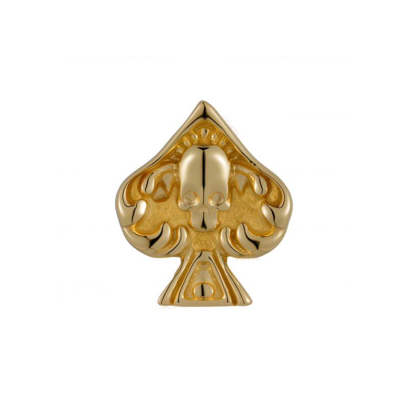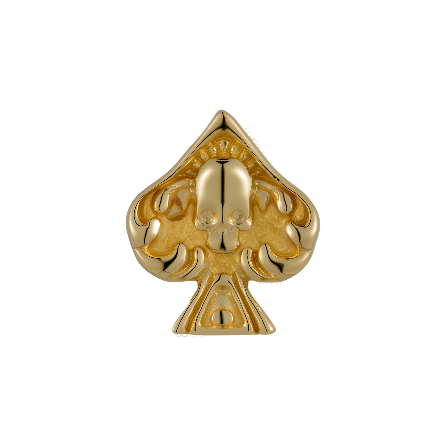 Pictured in 18Kt solid yellow gold with a skull-in-spade design.