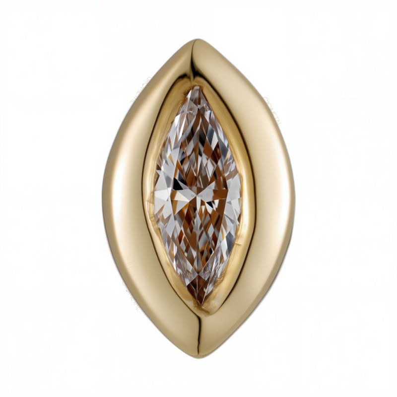 18Kt Solid Yellow Gold Marquise Bezel Threadless Top