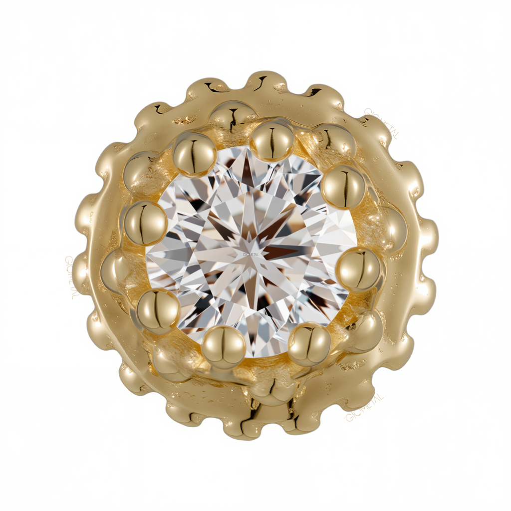 18Kt Solid Yellow Gold Milgrain Threadless Top