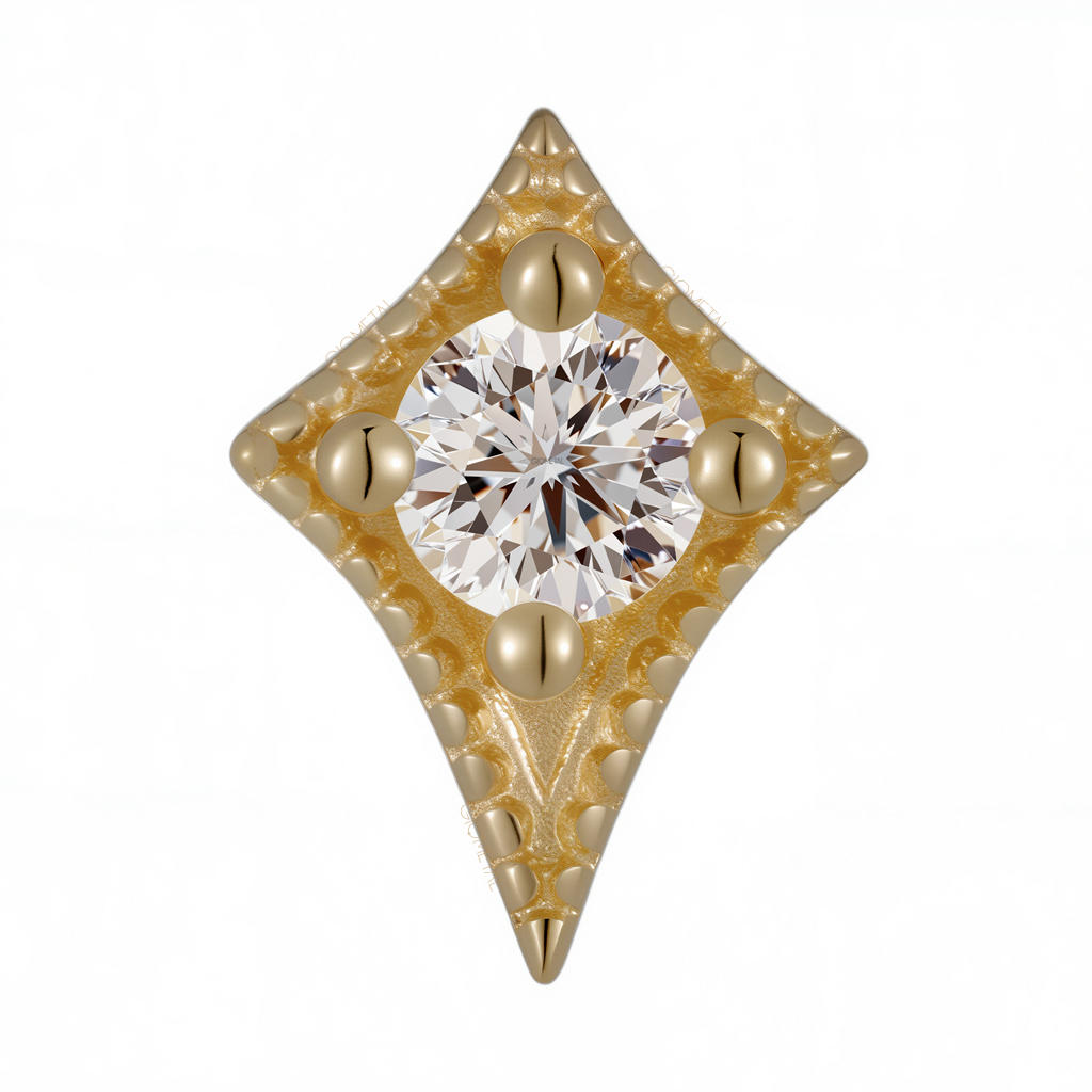 18Kt Solid Yellow Gold North Star Threadless Top