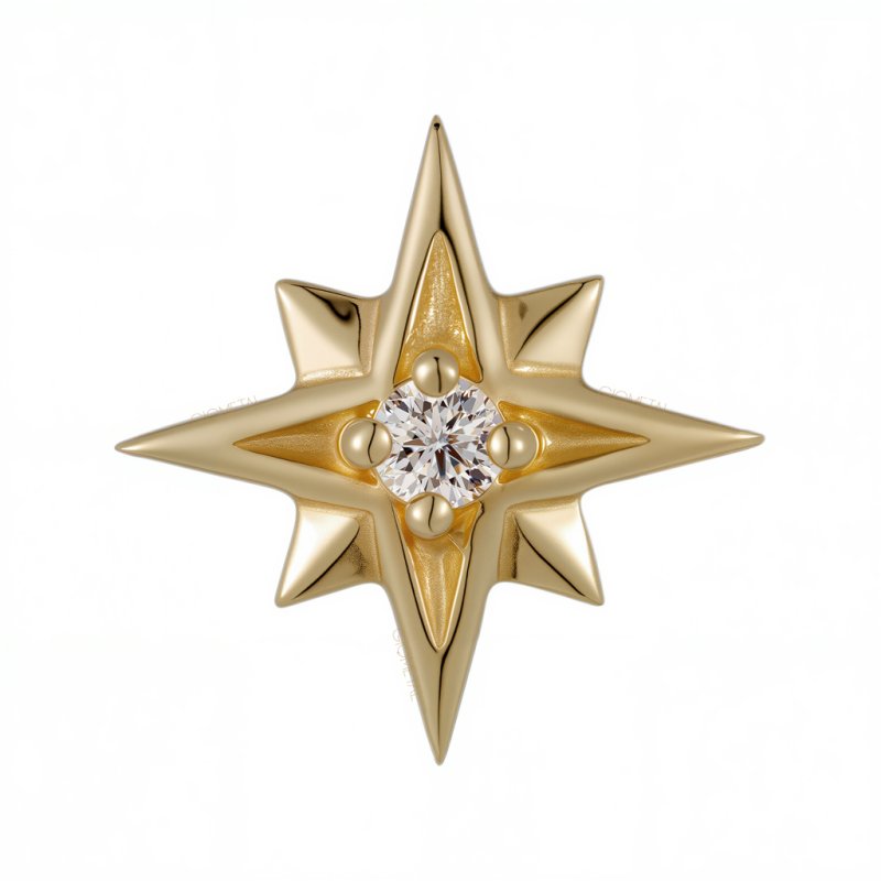 18Kt Solid Yellow Gold Prong Center Eightfold Star Threadless Top