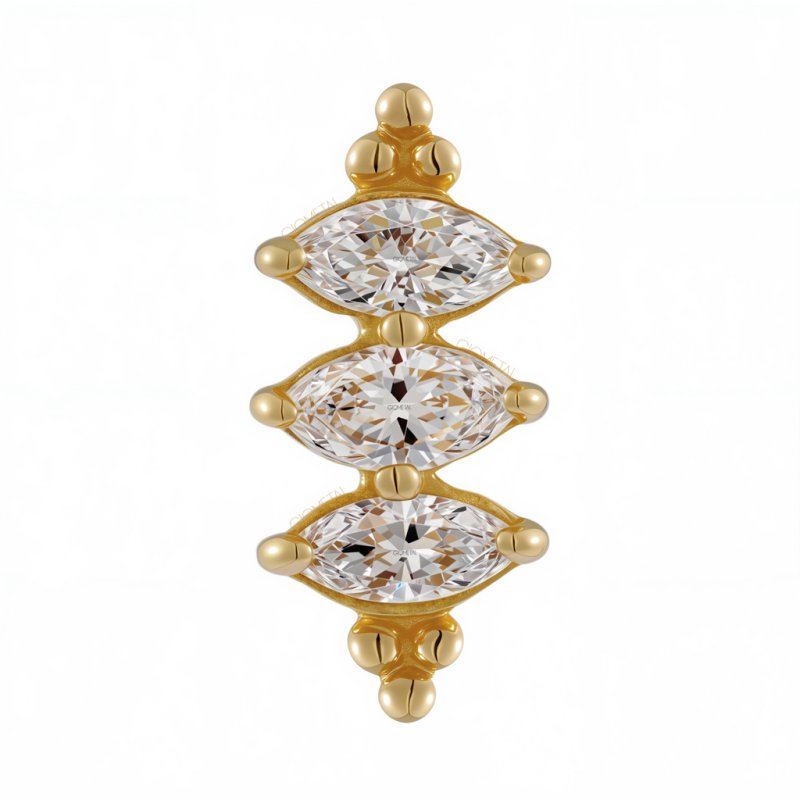 18Kt Solid Yellow Gold Trinity Marquise Que Threadless Top